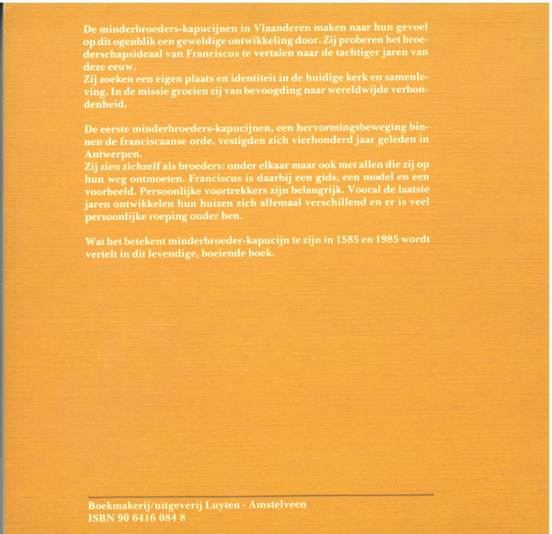 De minderbroeders-kapucijnen in Vlaanderen maken naar hun gevoel op dit moment een geweldige ontwikkeling door (1985). Zij probeerde het broederschapsideaal van Franciscus te vertalen naar de tachtiger jaren van de vorige eeuw. Zij zochten een eigen plaats en identiteit in de toenmalige kerk en samenleving. In de missie groeide zij van bevoogding naar wereldwijde verbondenheid.